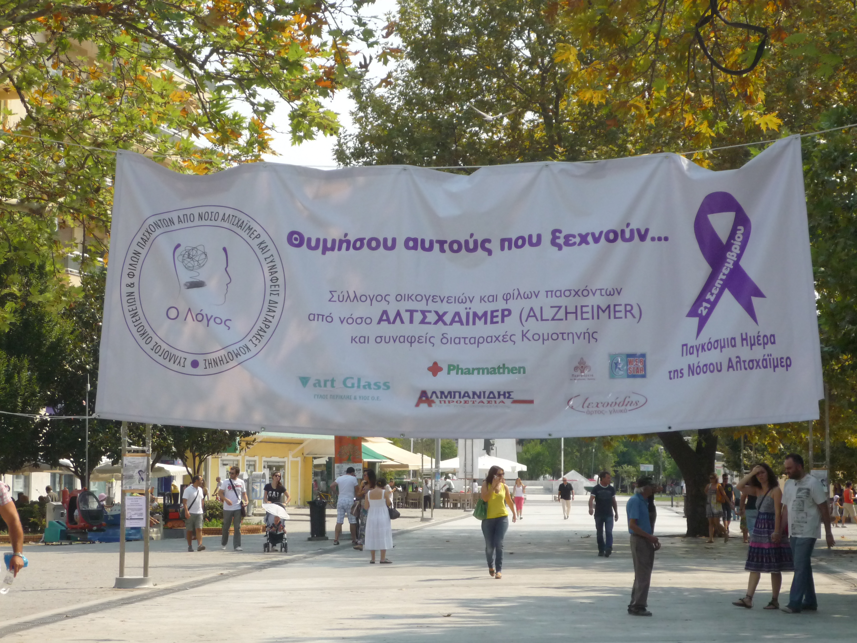 Το περασμένο Σάββατο, ξεκίνησε στην πόλη της η εκδήλωση για το Αλτσχάιμερ με σύνθημα «Θυμήσου αυτούς που ξεχνούν». Πραγματοποιήθηκε στην κεντρική πλατεία από τις 10 το πρωί έως τις 2 το μεσημέρι. Εκεί, τον κόσμο υποδεχτήκαν οι Λιζέτα Λιούρτα, ψυχολόγος, ο Κώστας Κλείτσας, νευρολόγος και η Ντίνα Παπαχρήστου, πρόεδρος του συλλόγου Αλτσχάιμερ. Μοιράστηκαν ενημερωτικά φυλλάδια, μπλουζάκια, καπέλα. Παρασχέθηκε ακόμη η δυνατότητα να γίνουν κάποια τεστ μνήμης σε PC.