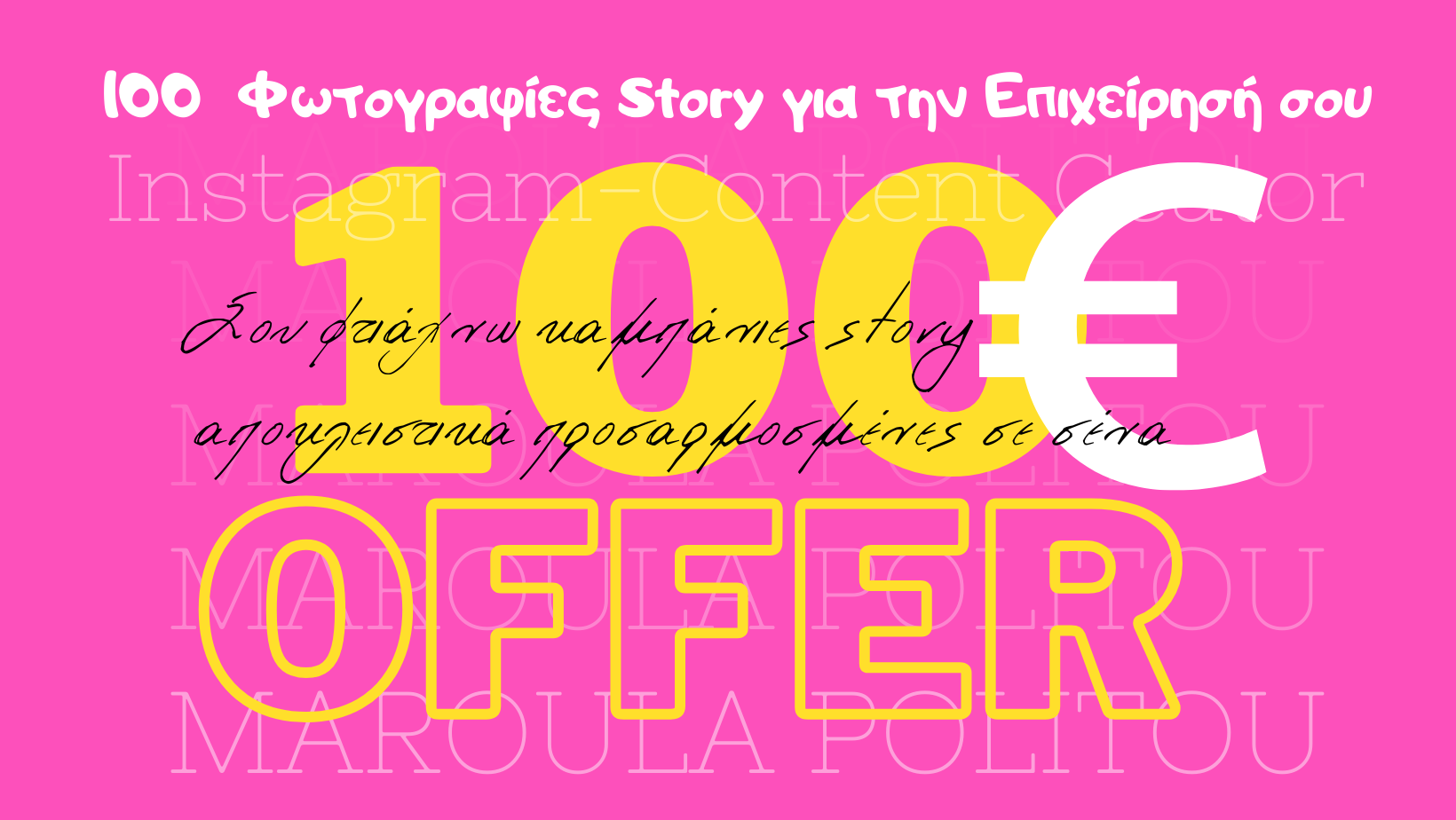 Και φυσικά δεν θα μπορούσα να μην ξεκινάω με μία προσφοράρα! 100 φωτογραφίες σε story μόλις στα 100 ευρώ, με την προσφορά για όλο τον Νοέμβριο 2024! Παράδοση όλου του υλικού της προσφοράς 10 μέρες μετά από την πληρωμή.