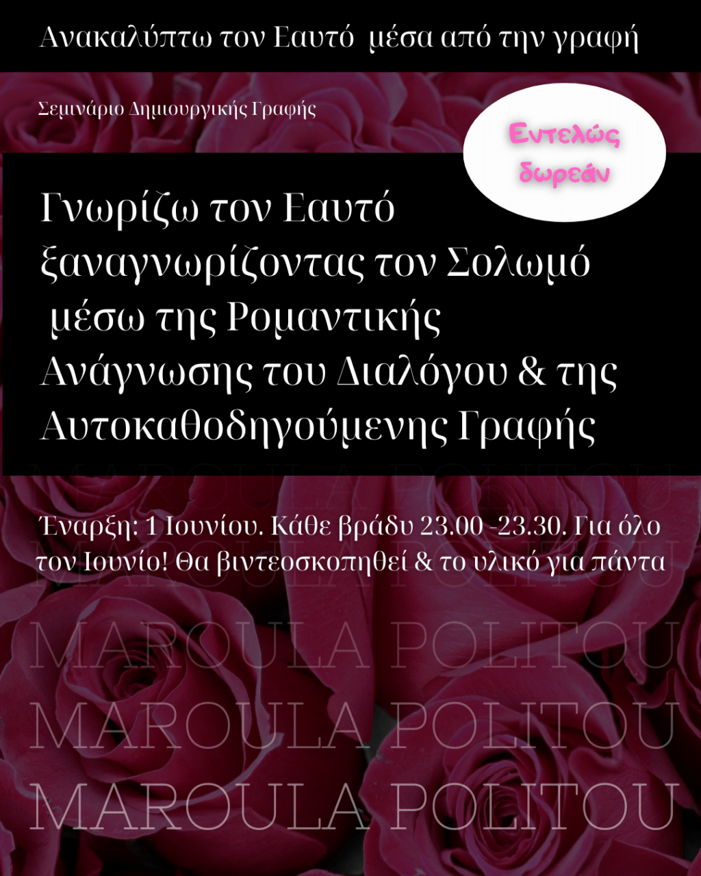 Εδώ θα βρεις ένα κείμενο του Διονύσιου Σολωμού το οποίο απέχει από τον τρόπο που τον γνώρισες στο σχολείο ή και γενικά. Σε προσκαλώ σε ένα ταξίδι αυτογνωσίας και ψυχικής ανάτασης!