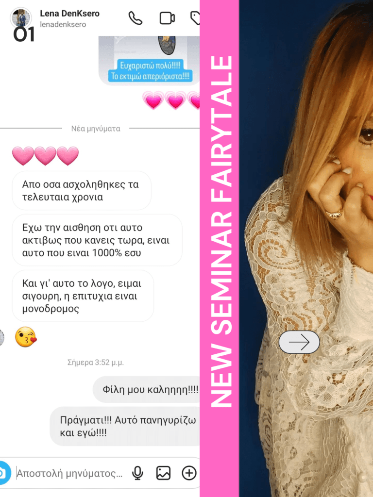 Όλη μου η δράση που πια την ονοματίζω «Εμπνεύσου & Ενέπνευση», είναι απόλυτα εναρμονισμένη με τον Ύψιστο Σκοπό μου… Και τώρα άντε να εξηγήσεις στους αφελείς κηνυγούς κεφαλών γιατί κάτι τέτοιο δεν είναι ανταγωνίσιμο… 19 χρόνια πορείας δημιούργησαν πηγαία κάτι πολύ συγκεκριμένο εκ των έσω! Το οποίο σε κάθε μου διδασκαλία θα διαμορφώνεται εξελικτικά πάλι εκ των έσω… Και να σας πω κάτι ακόμη ευθαρσώς, είναι τόσο μοναδικό ως αποτέλεσμα γιατί ήταν ενσταλαγμενο μέσα μου… Τα σεμινάρια «Στην Χώρα των Θαυμάτων» & «Ο βυθός με μια γοργόνα» είμαι εγώ• είμαι εγώ από την μήτρα, της ουσίας μου στην πιο ατόφια της μορφή, ως την χρονικότητα που ξεγλιστράει αυτή την στιγμή από τα χέρια μου για να φτάσει ως κείμενο στα δικά σας! Ευγνώμων για αυτό το Υπέροχο ταξίδι!